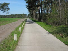 Na weer terug gefiets te zijn over dat fijne zandpaadje sta ik weer op de Pan. Het is maar goed dat ik de Himiway gisteren niet gepoetst heb, dan had ik morgen weer opnieuw kunnen beginnen. Ik steek de A67 over en pik hier de route over de Cartierheide op om via de Postelseweg en langs Herberg Het Wilde Zwijn uit te komen bij de Abdij van Postel. Bij gebrek aan koffie hier staand langs de weg mijn broodjes voor de lunch gesmeerd en die lekker op staan te eten. Dan maar verder naar Postel. Dit is zeker het eerste stuk een best mooie weg, wel opletten de auto's rijden hier als een malle zo hard en dicht langs je heen. Een kilometertje of zeven verder linksaf langs het Riebos om zo uit te komen bij knooppunt 232 aan het kanaal van Bocholt naar Herentals. Altijd leuk! Het is maandag dus lekker rustig hier. Onderweg kom je verschillende bunkers uit de tweede wereldoorlog tegen van waaruit ze toen over het kanaal heen lekker op de vijand konden schieten.