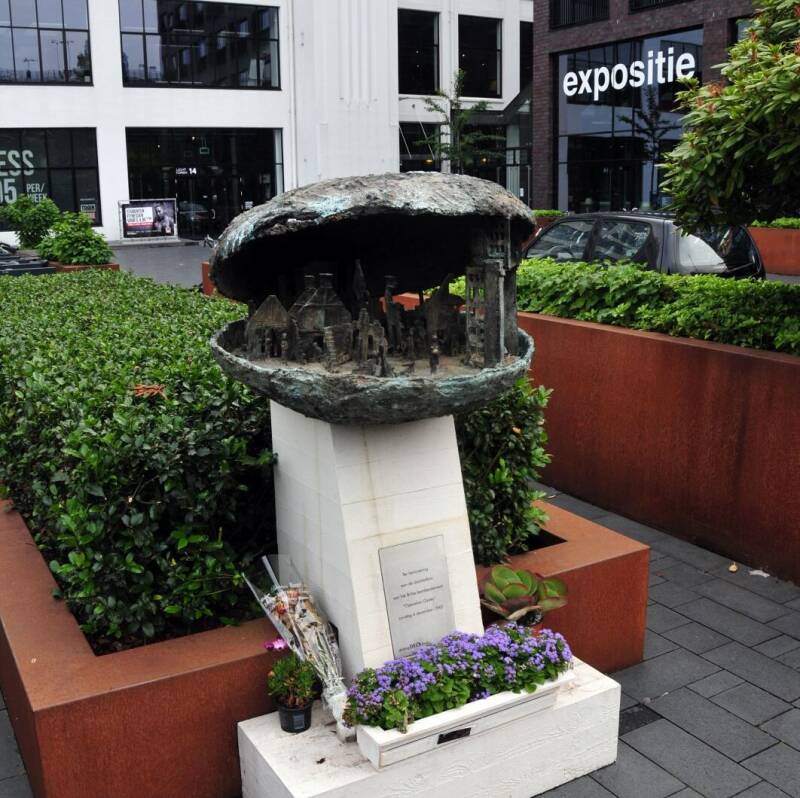 Op Zondag 6 December 1942 werd Operation Oyster bij daglicht uitgevoerd door de Britse Royal Airforce met 94 bommenwerpers waarvan er 16 niet terugkeerden. Het eigenlijke doel waren de Philipsfabrieken op Strijp S en de Emmasingel. Veel van de bommen troffen helaas andere doelen in de omgeving zoals winkels, woningen, kerken en het Binnenziekenhuis. Hierbij waren ongeveer 150 burger slachtoffers te betreuren en die worden met dit monument herdacht. Het word gezien de datum waarop de aanval plaatsvond ook wel het Sinterklaas Bombarderdement genoemd.
