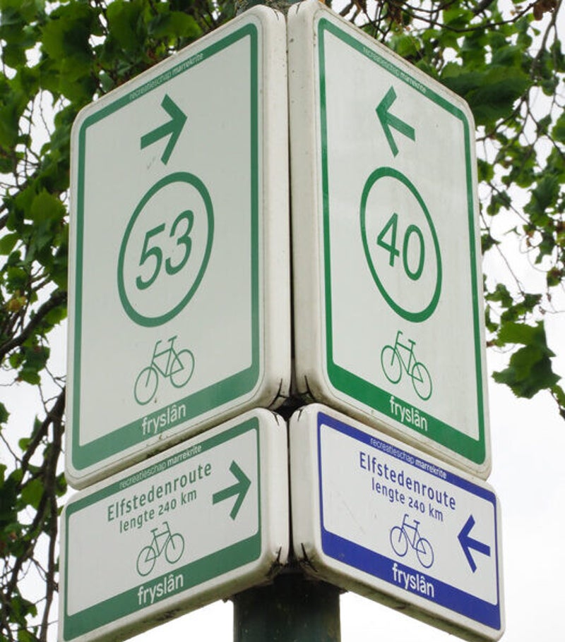 De snelle route de Elfstedenroute. Deze route volgt de meer doorgaande wegen en is zodoende ook meer geschikt voor de wielrenners onder ons. De route is geheel bewegwijzerd met de officiële Elfstedenroute bordjes, de groene bordjes volg je als je de route met de klok mee rijd, de blauwe bordjes volg je als je de route andersom rijd en is ongeveer 255 kilometer lang.