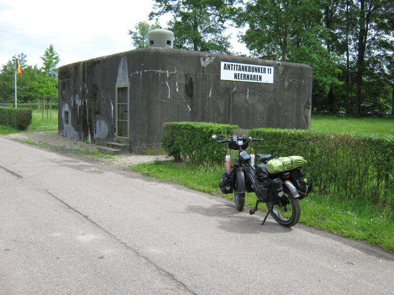 Onderweg kom ik met regelmaat wat dingen tegen die herinneren aan de Tweede Wereldoorlog zoals gedenktekens, bunkers, kazematten en de Antitankbunker 11 in Neerharen. In Smeermaas knal ik zo tegen de Maas aan, wat een magnifiek mooi gezicht! In Maastricht word ik nog bijna van mijn fiets gereden door een Limbabenees die zo maar rechtsaf slaat zonder te kijken, ook lekker en sorry zeggen ho maar. Het centrum is echt retedruk dus met goed fatsoen is er niet te fietsen en het Vrijthof staat ook vol met van die fotograferende mensen die nergens geen erg in hebben. Al snel ben ik Maastricht al weer uit en fiets via Cadier en Keer naar Margraten mijn eindbestemming van vandaag. Onderweg maak ik nog een ommetje over het terrein van de erebegraafplaats van de Amerikaanse strijdkrachten uit te tweede wereldoorlog die hier ligt, wat een indrukwekkend geheel met veel vlagvertoon en bloemenkransen.