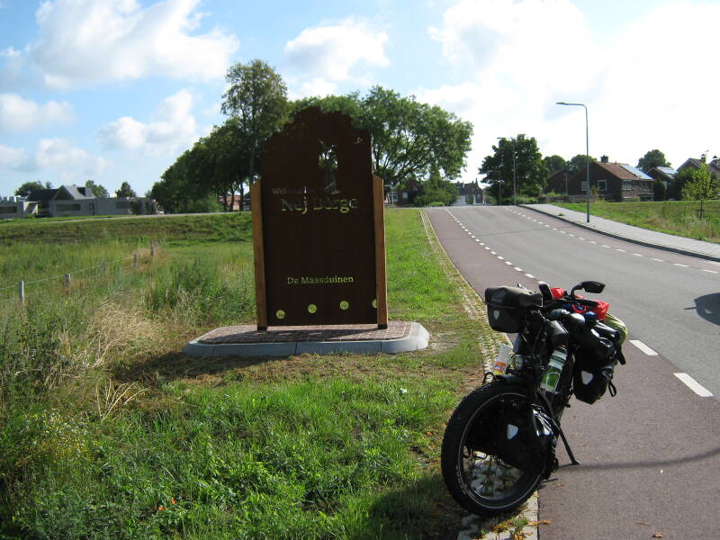 Naar Bedburg-Hau en dan via Kalkar naar Goch. Hier ben ik maar eens gaan bellen met de camping in Nieuw Bergen. Tentjesweer is het vandaag niet ik kan hier Chalet De Buizerd huren. Lig ik weer droog en warm vannacht. Zowel ik als alweer een fikse regenbui trekken de eindspurt vandaag. Na Goch gaat het naar Siebengewald en zo naar de camping. Ik ben hier al vaker geweest dus ik weet waar ik terecht kom. Onderweg duik ik maar weer eens een overdekte bushalte in om voor de regen te schuilen. Maar al snel fiets ik weer verder nat ben ik toch al en de camping is niet ver meer.